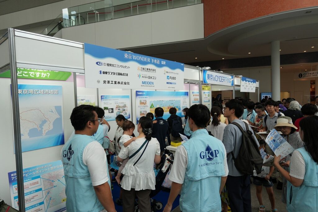 展示の企画や運営は、国土交通省や東京湾再生に取り組む9都県市および、協賛企業9社の協力によるもの。ブースでは、東京湾の再生に欠かせない下水道の働きを紹介するパネル展示や、顕微鏡で微生物を観察できる体験コーナーを実施。2日間で約1,000名の方が来場し、子どもから大人まで多くの方に楽しんでいただきました。