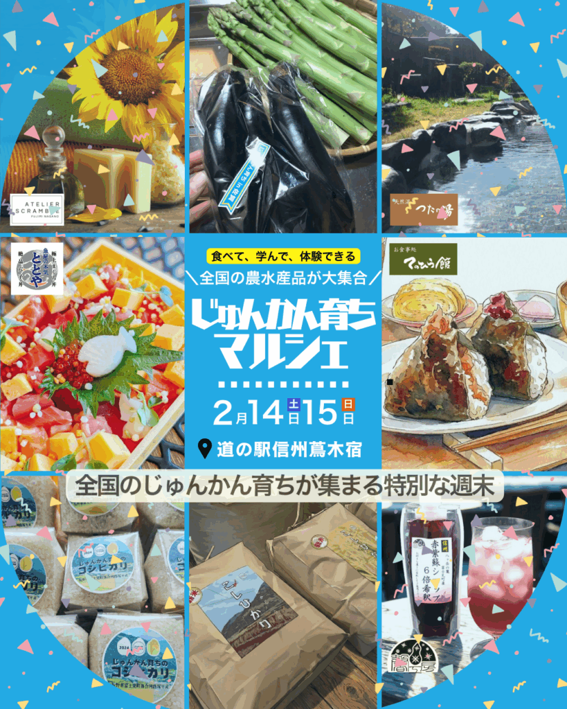 じゅんかん育ちを「食べて・学んで・体験できる」様々な企画をご用意していますので、ご家族・ご友人とご一緒に、ぜひ遊びに来てください!