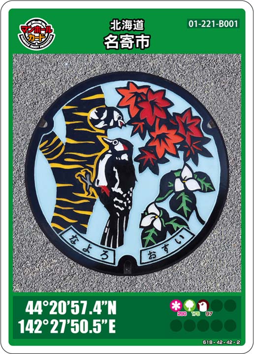 | 名寄市 (A001) | ![]() | 第10弾 | 2019/08/07 | 道の駅「もち米の里☆なよろ」 北海道名寄市風連町西町334番地1 電話:01655-7-8686 (問い合わせ先) 北海道名寄市建設水道部上下水道室業務課 電話:01655-3-2511 | 9:00~18:00 ただし、元日(1/1)はお休みです。 | こちらからご確認ください | |
