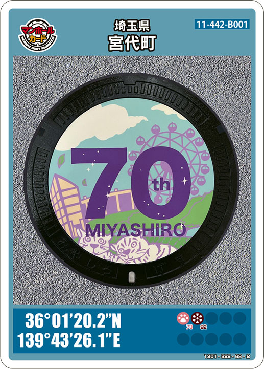 | 所沢市 (D001) | ![]() | 第16弾 | 2022/01/15 | 所沢市観光情報・物産館YOT-TOKO 埼玉県所沢市松郷143-3 (問い合わせ先) 下水道維持課 電話:04-2921-1022 | 9:00~17:00 | こちらからご確認ください | |