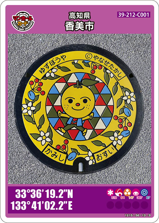 | 香美市 (B001) | ![]() | 第26弾 | 2025/07/25 | 香美市いんふぉめーしょん(観光案内所) 香美市土佐山田町東本町1-5-1 電話:0887-52-9880 (問合せ先) 香美市上下水道局 電話:0887-53-1086 | 9:00~17:00(年中無休) | こちらからご確認ください | |